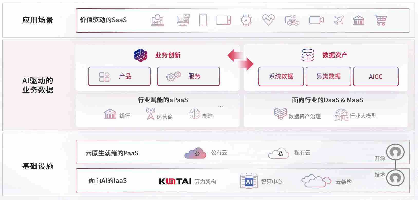 数字时代,,,围绕企业数字化转型的关键要素,,z6com尊龙数码开创性的提出数云融合战略和技术体系框架,,,,着力在云原生、、、、数字原生、、、AI原生和信创产业上架构产品和服务能力,,为处在不同数字化转型阶段的快消零售、、、、汽车、、金融、、医疗、、、政企、、、、教育、、运营商等行业客户提供泛在的敏捷IT能力和融合的数据驱动能力,,,构建跨界融合创新的数字业务场景和新业务模式,,,,助力企业级客户建立面向未来的核心能力和竞争优势,,,全面推动社会的数字化、、、智能化转型升级。。。。